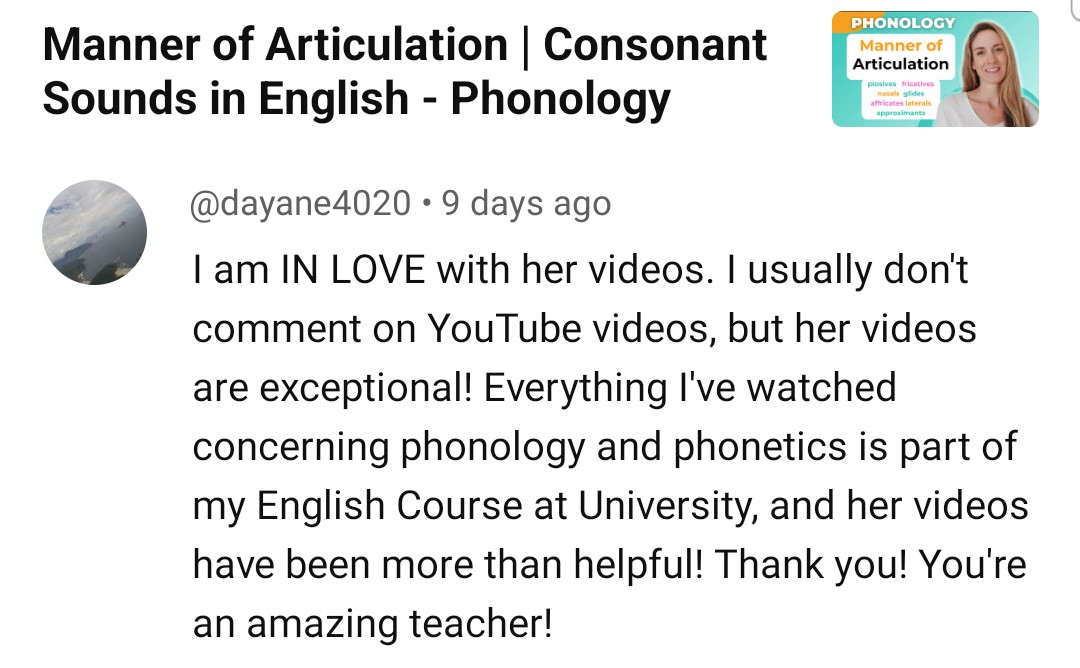 Initially, these videos complemented her general English classes in Manchester, serving as supplemental materials for her students. As channel views increased, Billie’s focus shifted towards her main passion: accent reduction and phonology.